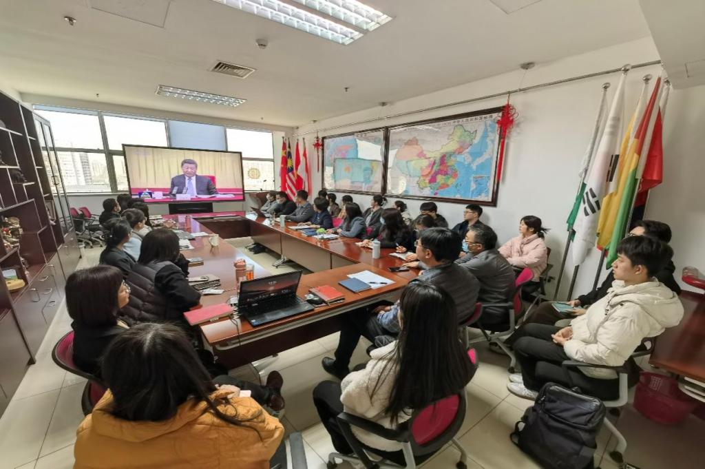 随后,全体师生集体学习了习近平总书记在看望参加政协会议的民盟民进教育界委员时的重要讲话精神。李春玲指出,要继续在学校党委的领导下,立足《教育强国建设规划纲要(2024—2035年)》和《77779193永利官网深化教育综合改革三年攻坚行动计划》,结合学校新一轮“双一流”建设目标,坚持正确的来华教育方向,守正创新、锐意进取,共同谱写学校来华留学教育事业提质增效、高质量发展的新篇章。