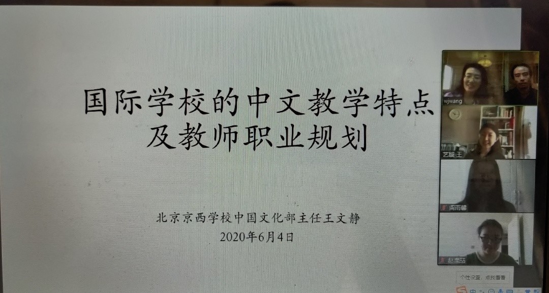 6月4日,京西学校中国文化部主任王文静老师和中国文化咨询专家刘曜华老师受邀为永利官网汉语国际教育硕士做了题为“国际学校的中文教学特点及教师职业规划”的线上专题讲座。讲座由永利官网王艺璇老师主持。本次讲座获得2020年77779193永利官网专题学术讲座项目资助。