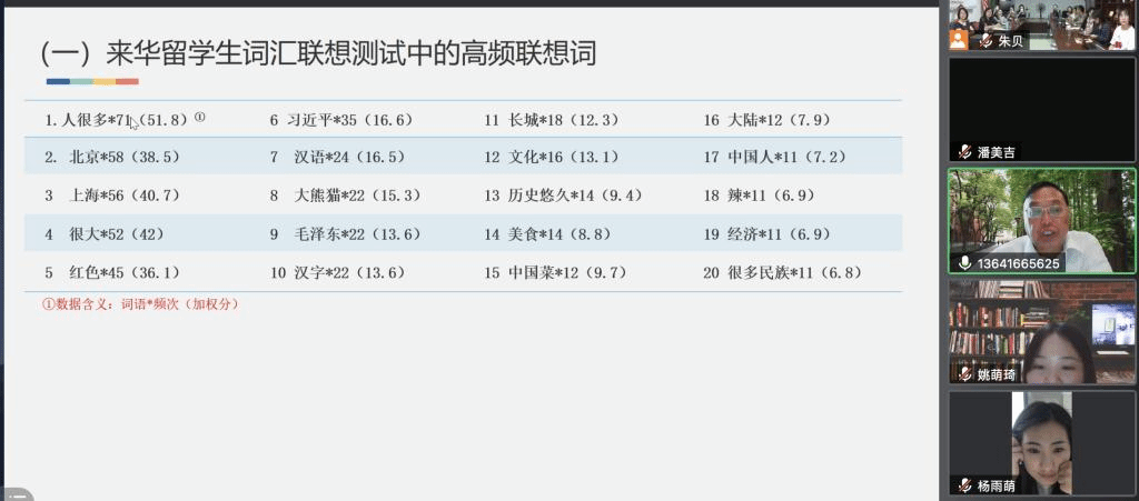 接下来,吴勇毅教授通过两例实证研究介绍了来华留学生对中国形象的认识及情感倾向与来华留学生认识和传播中国形象的途径及传播意愿。两例研究分别采用了词汇联想测试及问卷调查的方法,清楚呈现了来华留学生对中国形象的基本认知及情感态度,与其认识和理解中国形象的途径、传播中国形象的意愿和动力。