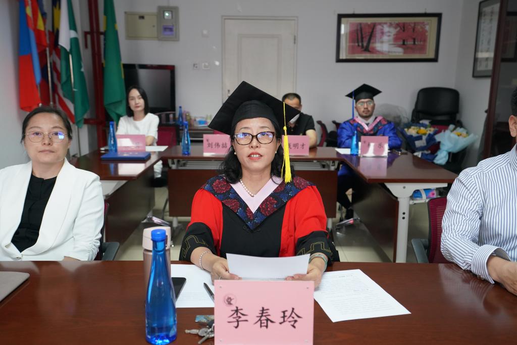 毕业生孙珠珠、杨乐(阿富汗籍留学生)作为学生代表依次发言。两位同学通过回顾两年来在校学习生活的点滴,表达了对母校的感恩、不舍以及对老师们的感谢。他们表示,今后将继续牢记理想信念,不辜负师长的殷切期望,在社会中书写新的华彩篇章。