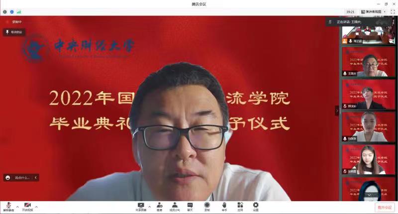播放完导师们和2022届毕业生精心准备的毕业寄语短片后,李春玲院长致辞,向圆满完成学业的全体毕业生表示热烈的祝贺,向毕业生的家人、朋友表达真挚的谢意,向教导和帮助学生成长的老师们表示崇高的敬意。李春玲勉励毕业生们,要感恩时代,毕业后顺应历史大势,正确把握机会,积极迎接挑战,努力去做最好的自己;要心怀理想,在磨难面前坚定理想信念,树立以青春之我、报青春之国的雄心壮志;要脚踏实地,将“个人梦”融入“中国梦”,用“奋斗梦”托起“民族梦”,毕业后要更加珍惜青春韶华,不断努力拼搏,脚踏实地去创造明天的辉煌,更好地服务国家、服务民族、服务社会,让自己的理想和人生大放异彩。
