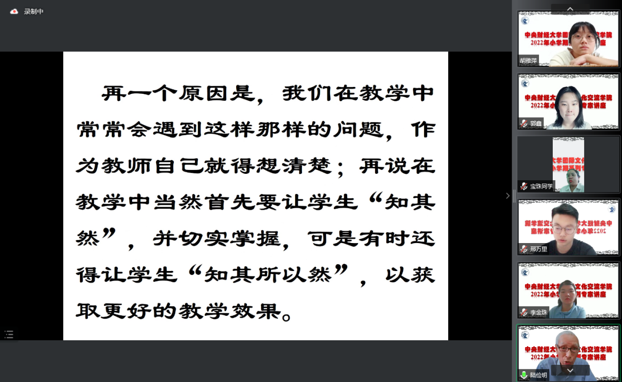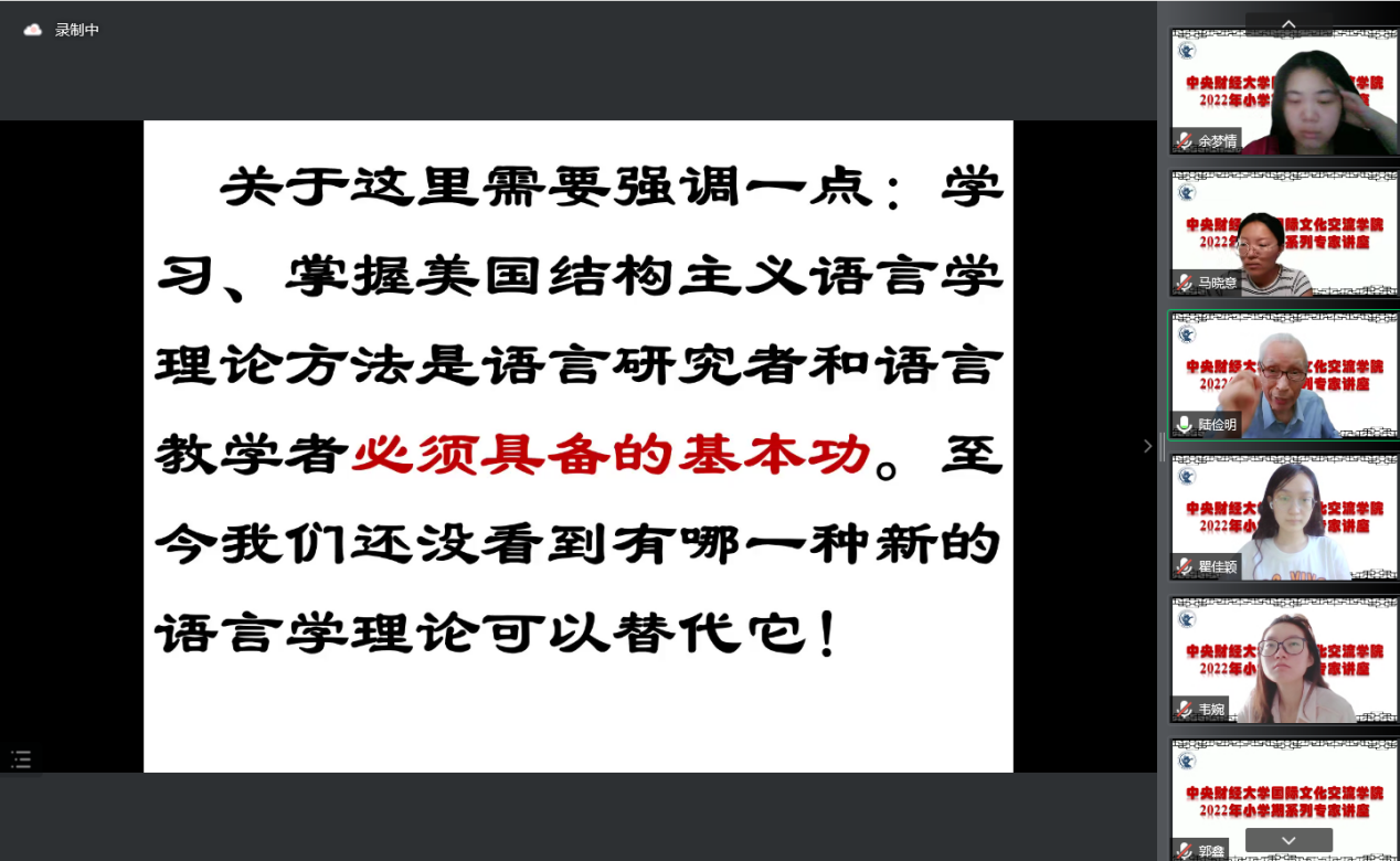 7月4日上午,北京大学陆俭明教授在永利官网成功举办了“从事国际中文教育应具备这样的知识基础”专题线上讲座。讲座由院长李春玲教授主持,永利官网全体研究生导师、预科教师、全体2021级和2022级汉语国际教育硕士专业学位研究生参加了本次讲座。
