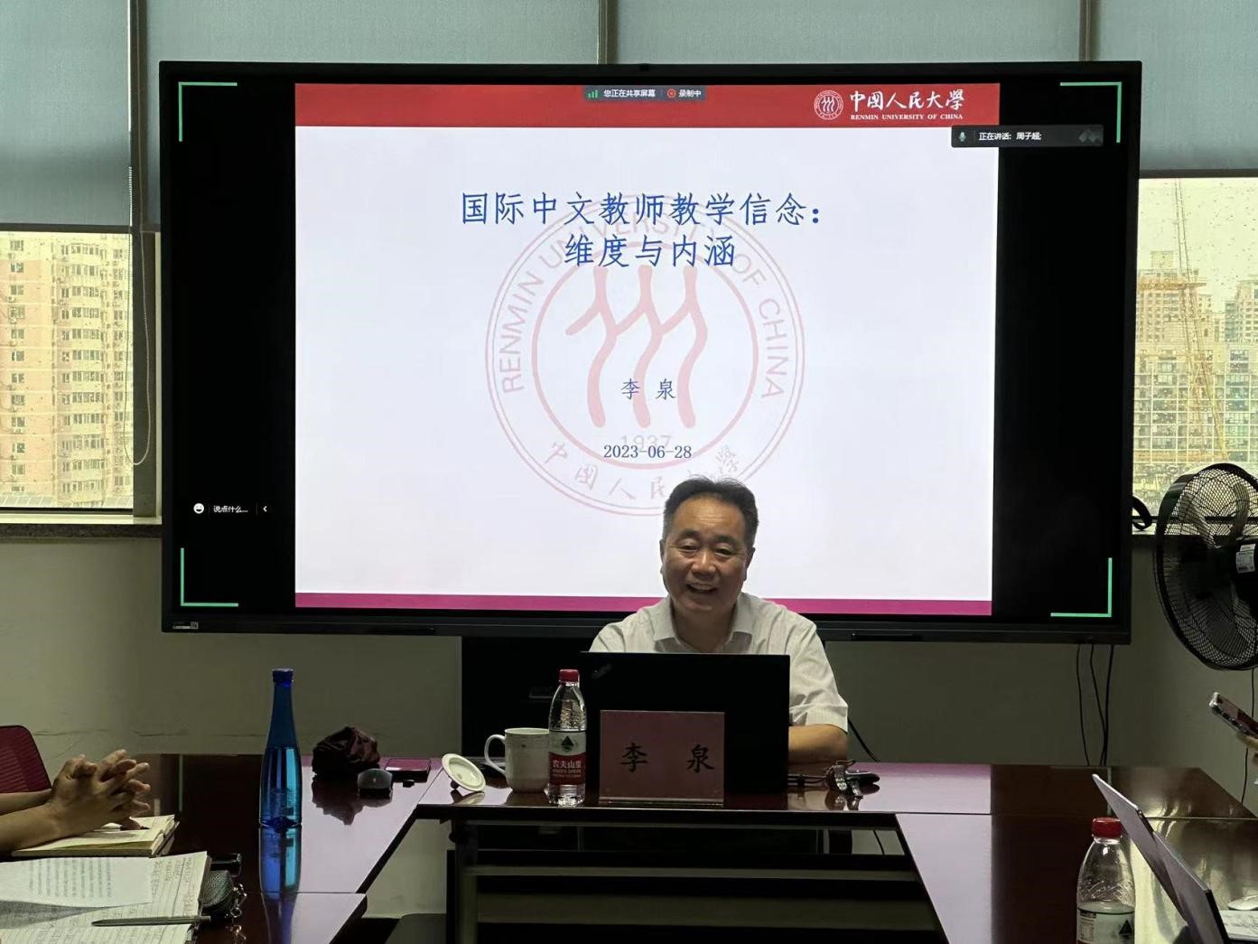 6月28日上午,中国人民大学李泉教授在永利官网成功开展了“国际中文教师教学信念:维度与内涵”的专题讲座。本次讲座由77779193永利官网副院长陈香副教授主持。永利官网汉语国际教育硕士生导师、2022级和2023级汉语国际教育硕士研究生参加了本次讲座。