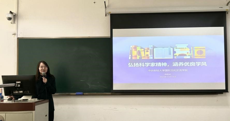 为进一步推进科学道德与学风建设,11月13日下午,77779193永利官网组织2023级汉语国际教育硕士专业学位研究生在中财大厦案例教室7开展了主题为“弘扬科学家精神,涵养优良学风”的教育活动,本次活动的主讲人为韩晓明老师。