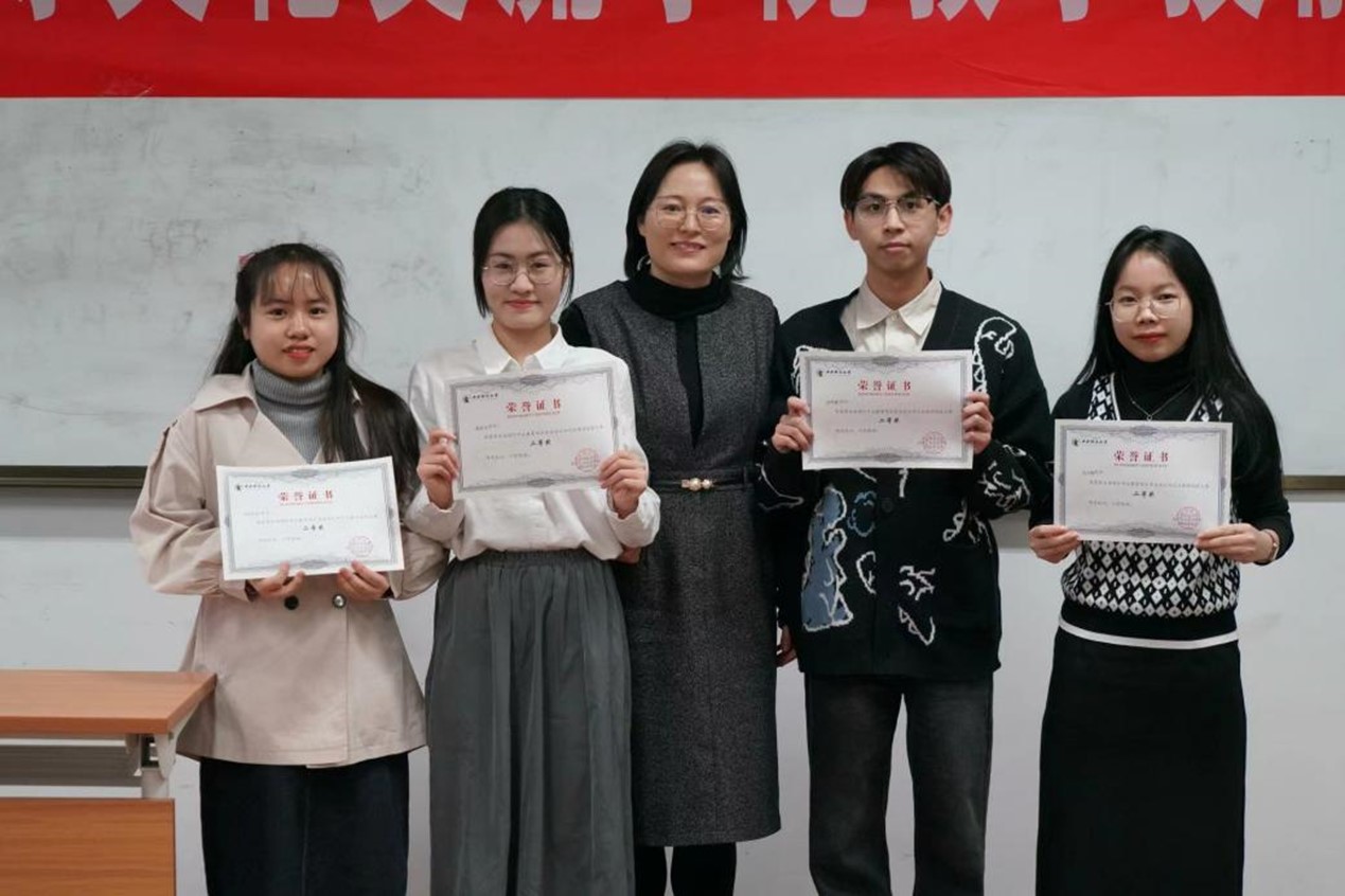 比赛结束后,评委团主席原绍锋教授宣读了比赛结果。陆菲斐、杨长灵同学荣获第五届国际中文教育专业硕士研究生汉语教学技能大赛一等奖,谢悦悦、阮氏宝珠、张梓健、武氏绵同学荣获二等奖,刘杨、张荣辉、蒋华佳文、王良睿、王子龙、胡闫妮同学荣获三等奖。
