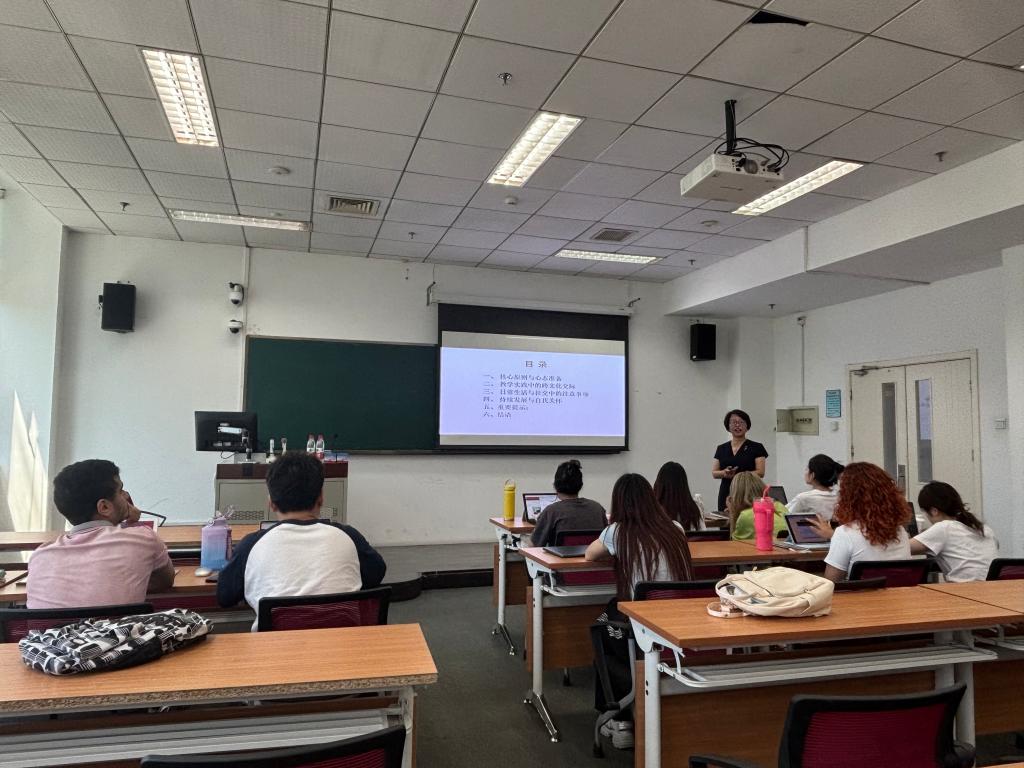 课程包括“核心原则和心态准备”“教学实践中的跨文化交际”“日常生活与社交中的注意事项”“持续发展与自我关怀”以及“重要提示”等五个方面。李春玲以自己在日本的经验作为案例分析,强调海外任教时要摒弃文化优越感,并保持高度敏感,尊重文化差异。她提出,要成为文化学习者,积极学习当地的语言、了解历史、风俗习惯、艺术、饮食等,时常反思自己的行为模式。她认为在沟通中既要注意方式方法,重视非言语沟通的重要性,又要注意不同文化的社交礼仪和习俗,如时间观念、宗教与节日、尊重隐私与个人边界等。她希望同学们从持续发展与自我关怀角度,建立跨文化网络。要定期进行跨文化反思日记,记录观察、感受和学到的教训,要保持对中国文化的自信与对外国文化的谦虚学习,还要积极与导师、同学多沟通交流,保持身心健康。